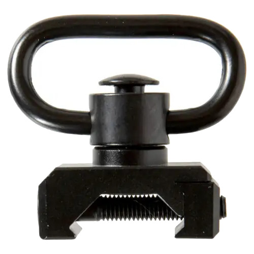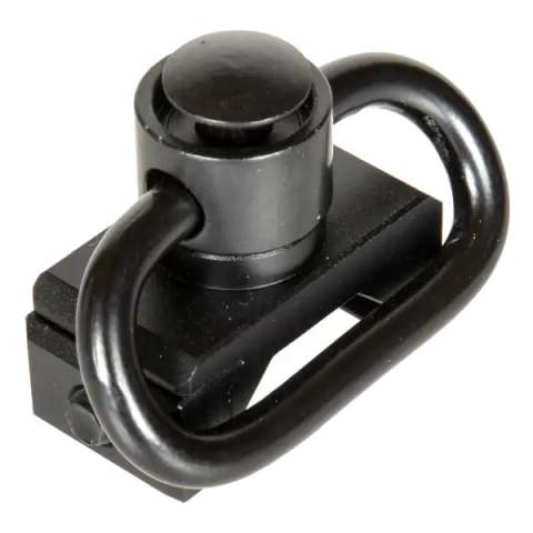 A metal QD tactical sling swivel attachable to a RIS mounting rail.