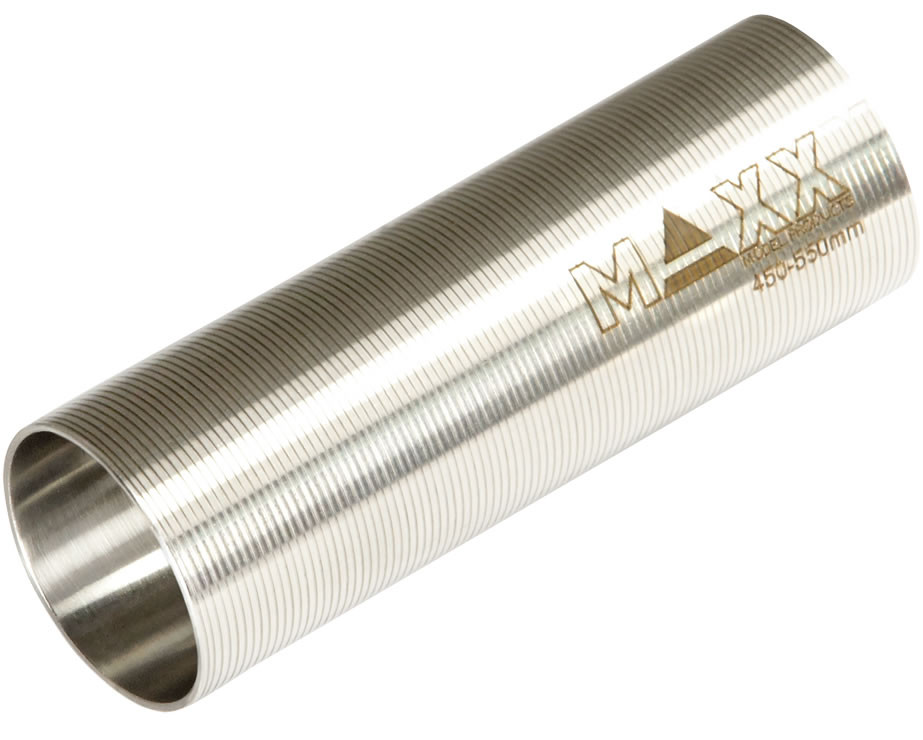 CNC Hardened Stainless Steel Cylinder - TYPE A (for 450mm - 550mm barrel length) is precisely machined to ensure consistent air compression and improve durability for most standard airsoft AEG gearboxes.