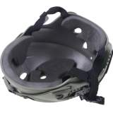 A replica of a helmet made of polymer. Due to its small weight and a considerate construction, it is very comfortable to wear. Foam pads placed inside allow this helmet to sit very stably on the user’s head. The placement of the pads can be adjusted to the user’s preferences, because they are mounted with stickers. 2-point webbing features a wide array of adjustment options and a buckle.