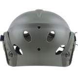 The helmet is equipped with a set of side mounting rails that allow for attachment of an entire array of additional equipment like goggles, tactical flashlights, headsets, etc. In the front part of the helmet is a polymer mount and drawstrings enabling the attachment of NVG systems.