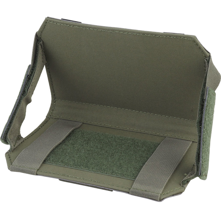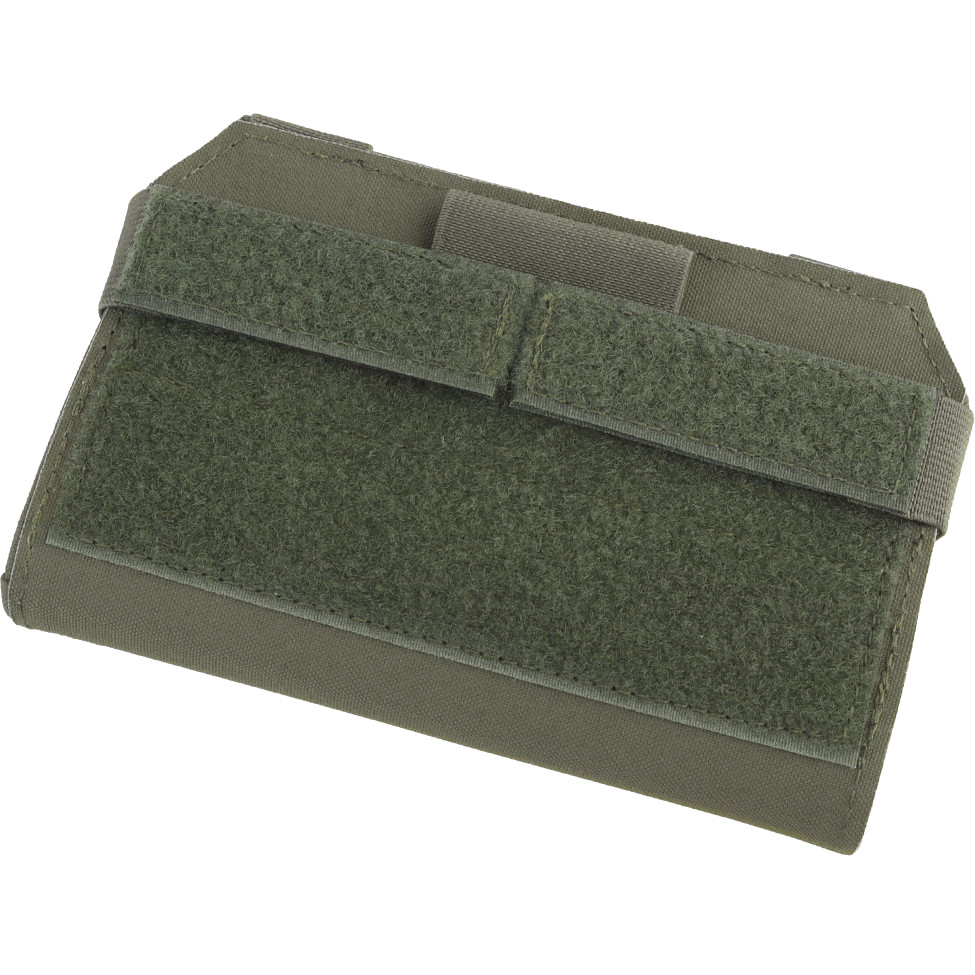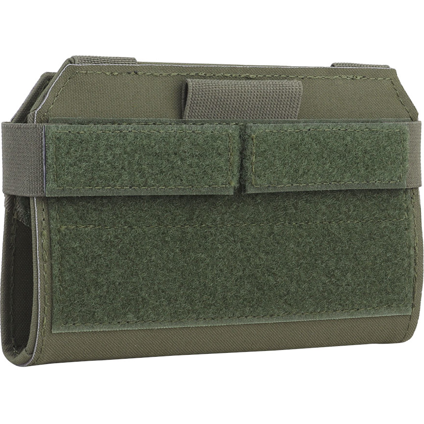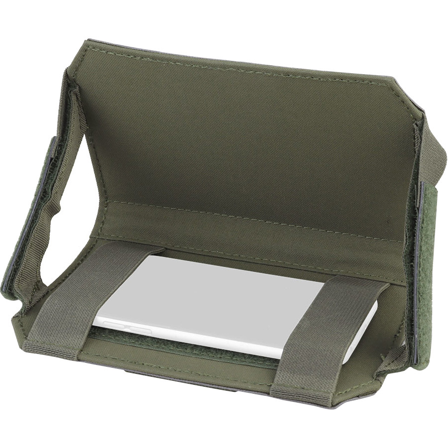 Wosport Tactical Phone Pouch - Foldable Phone Holder A foldable phone holder that mounts onto MOLLE, made from 500D Cordura. The model features a patch panel and a security strap. Upon opening the panel, a Velcro panel and elastic straps are revealed, making it ideal for securely carrying a smartphone or navigator.